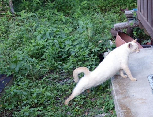最近は毎日のブログのアップ時間が遅くなりました。今までは、朝8時ごろにはアップしていましたが。6時前に起きて、はなに、おはようとあいさつし頭を撫で、次に柵を開け、ヤギ舎の外ロックを外し、ヤギとスキンシップ。その後に家周りを少し散策。ノッコがミャーと朝の挨拶。今日は、駐車場周辺から。毎日挨拶してくれるのではないので、挨拶してくてるとラッキー。6時から2時間ほど農作業。今日はトラクター作業。8時になれば日差しが射すので外作業は終えて、朝食です。