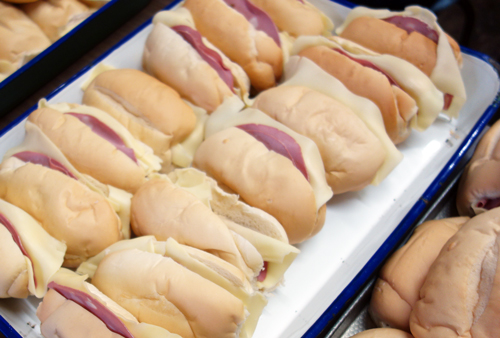 写真は、ブラジルのパンにチーズとハムを挟んだものです。毎年開催の一泊イベントの朝食です。皮はパリパリ 中は、柔らか。フランスパンのような、コッペパンのような それとは異なるブラジルパンです。市内のブラジルショップで購入します。