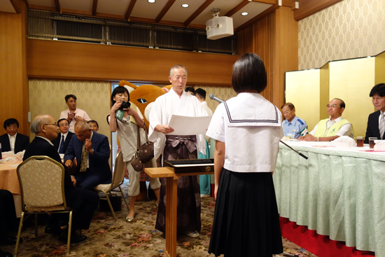 地域の交通安全に関わる団体の人びと100人余が参集し交通安全の取り組みを紹介しました。私も交通指導隊員として制服で参加。会場には、ゆるキャラ いなりんのガールふれんどで最近デビューした「いなりコ」が参加し、花を添えていました。テーブル間を通るのが大変。愛嬌を振りまいていましたが、この時期暑苦しい印象です。中に居る人さぞや大変でしょう。以前、イナリンを被るチャンスはあったのですが、全て後輩に押し付けました。