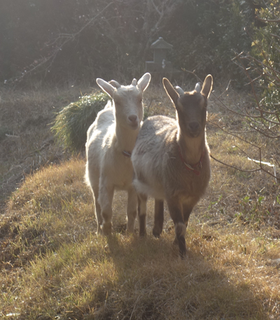 今は、姉妹ケンカをしながら仲良く暮らしています。動物は優位性をつけますが、どちらがボス(リーダー)かというと、最初の対面で、2頭で決めました。メイはジュンがヤギ舎に入ってきたら、部屋の高い部分に立ち、ジュンにあっちへ行けとアピール。メイは私が先に来たからお姉ちゃんヨと言ったか、ジュンがよろしくお願いしますと言ったか分かりませんが?これで決まり。