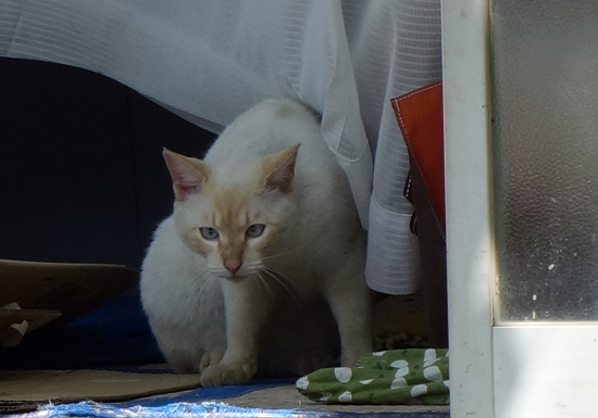 痩せた仔猫?で、何故か家周りにいて、眼があえばこちらを見ている。エサを与えたら食べる。これが付き合いのはじまり。まだ性別 プロフィール不明。ペットフードを与えていたら、ある時 首に他のネコに噛まれた大きな傷あり人で比較すれば10㎝余、動物病院で受診したいが、毛さえ触らせず逃げる。ネコ心配と可哀想と感じながら現在に至る。周囲のノラネコグループでは、はるかに小柄。どうも、いじめられる立場のようです。
