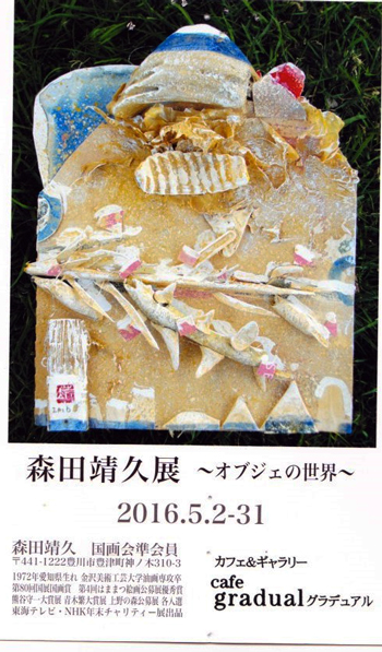 カフェ&ギャラリー gradual グラデュアルで5月2日より開催の 森田靖久展~オブジェの世界~を観覧しました。桜ヶ丘ミュージアムでの竹内展観覧後に立ち寄りました。4月から時間の余裕が多くなったので、ご案内を頂いた展覧会は可能なかぎりお邪魔しようと思っています。