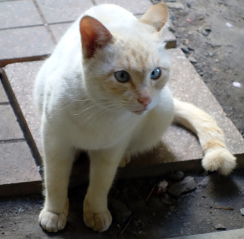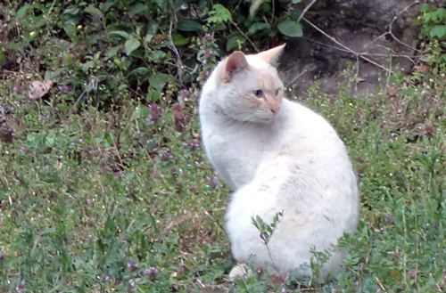 夜 勝手口ドアを開けると、招きネコポーズで立っていて、ミヤ―となき近づいてきます。ノラ生活が長かったようです警戒心強しですが、距離は近づいています。出会ってから半年余 生きるすべを承知しているので今後どうなるか?知識ほとんどないので、性別 年齢等まったく分からず。今は、コミュニケーションを作る時期ではと感じています。