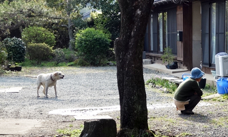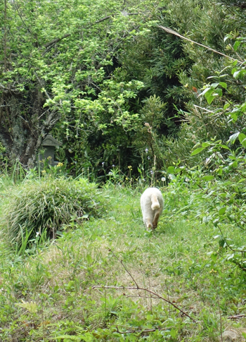 ヤギ達は、ネコに最初から無関心ですが、イヌのはなは、ヤギが来たと思ったら、今度はネコか~。愛情がそちらへ行ってしまったかと寂しそう。はなチャンが一番だよと言いつつ頭をなぜると納得。はなは、言っていることを理解しているのです。