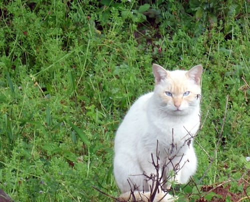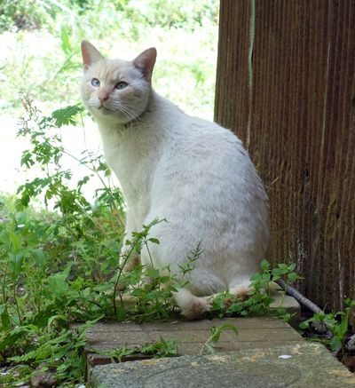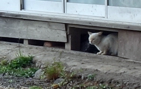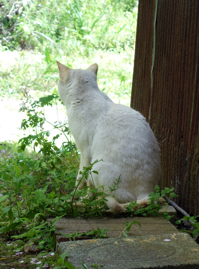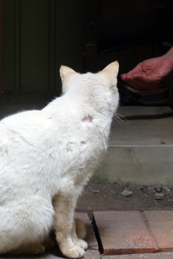 昨日は雨 早朝 勝手口にたたずんでいる。もう少したってからペットフードをあげようとして、ドアを閉める。その後見たらいない。その後、声掛けしても顔出さず。どうした? 心配でした。
