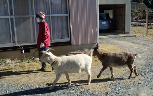 実は以前私もヤギ飼っていたですよと、スマホで一宮市の河川敷のヤギや家族とのヤギ写真を見せてくれました。ここでヤギ飼いに会うとは、ご縁に! 今年はいい事ありそう。