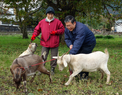 大型犬の散歩は大変ですネ →柴犬や秋田犬などの日本原産の狩猟犬と出会うと、互いに猟犬の血があるので大変。出会わないよう、散歩時間や、コースは配慮しているんですとニッコリ。