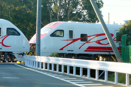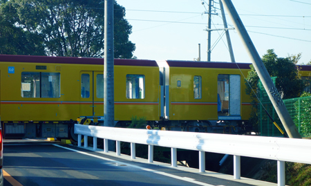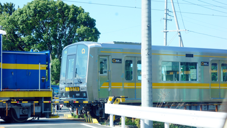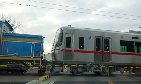 朝 出勤の楽しみは日本車輛の工場横の道路を通る事。豊川市諏訪町の日本車輛製造は、鉄道車両を製造する大工場です。朝8時少し前に数分、製造途中の車輛が、工場外に出ます。鉄道の引込線がJR豊川駅まで接続していて、朝作業ラインの変更の為長い車輛が牽引車輛に引かれ、ほんの少し工場外に出て、また、戻ります。タイミングが合えば、踏切遮断機が下り、入れ替え作業が見られます。私が出会うのは10日に1回程です。出会えば私は、ラッキー。人によっては、通勤が遅くなると残念。