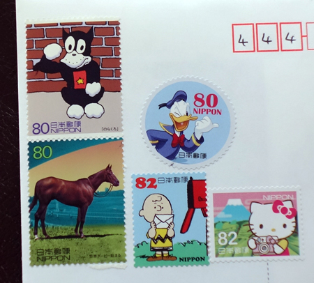 写真は、職場に届いた、コンサートチケットの簡易書留での返信用に同封された切手です。返信用封筒に貼付するのがもったいない程の可愛さ。かっこよく言えば、子どもの夢を包んで、チケットが届きます。