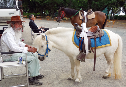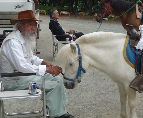 そして乗馬コーナー 写真の、人と馬の関係が素敵。愛情を感じます。髭が仙人のようなヤギのような男性はOさん。地元で牧場をもち、獣医さんでもあります。親うさぎの大学の先輩です。