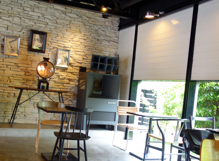私が、オーディオがいいんですヨと言うと、反応なし。 音? そういえば大きな箱があったと言われること多し。確かに箱は大きいが、音は控えめ 会話の邪魔をしない程度の小音量。大きなスピーカーはあるが、店内調度品に見えるかも。スピーカーはアルテックA7 1950年代の劇場用スピーカーです。真空管アンプでジャズのピアノトリオを主に静かに鳴らしています。大きくてもぼわーとした音ではないのです。好きです。