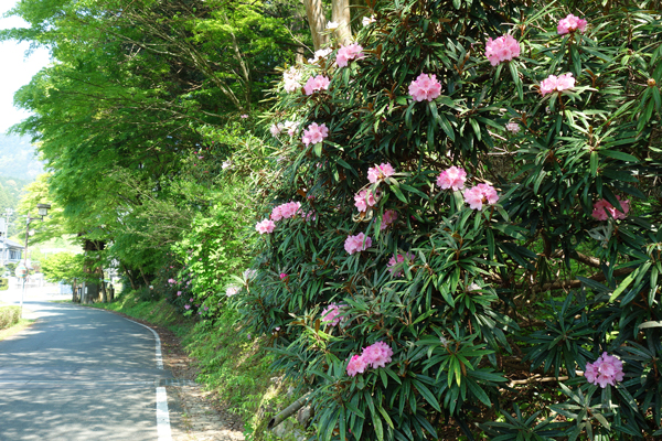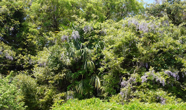 到着そうそう 満開の藤の木々の説明。以前訪問した時は、咲いていなかったので 咲く花たちに圧倒されました。住宅地の中に森があるという印象です。3月末に、我が家で 桜とヤギのカフェを開催したことと重なり、花が咲いている時の催しに、おもてなしを感じました。