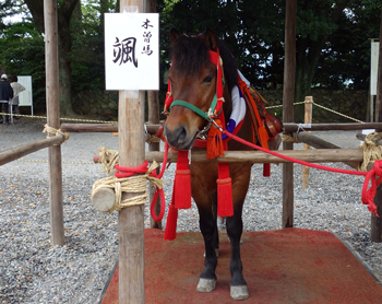 よって毎年1回は行っています。1日は雨が降る。と言われていますが、4日は雨でした。神社式典 少年が馬に乗って駆け抜ける流鏑馬 剣道・弓道大会 そしてお楽しみの植木市、食べ物屋台多数。植木を買うのが楽しみで、今年は大果実が生る山桃の木を購入。苗木店主人曰く、年々お客さんが少なくなった、としみじみ。たしかに空きスペース多数でした。