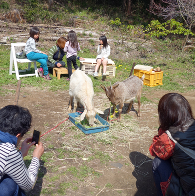 30日のヤギカフェ 晴天、 風吹かず暖かく、桜咲きました。ありがたい。来訪の皆さま ありがとうございました。お礼申し上げます。