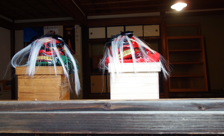 そして、今年は子ども獅子も新たに作り2つになり、女の子獅子もできました。写真向かって右側が今年デビューします。子どもがいると、町も祭りも元気になります。男女共同参画 雇用の均等の祭りバージョンです。