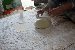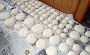 ④餅番 餅をつき、奉納や、参拝者に配ります。