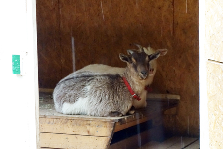 今日は、一日中で雨だったので、ヤギと遊びました。