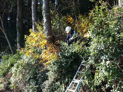 昨日 持ち山山林の、枝の伐採作業をしました。延長200mほどの道路に面した森林は、陽があたる道路面は雑木が繁り、成長すると道路側に垂れ下り、車通行に支障がでます。よって、数年毎に、伐採をしています。雑木を完全除去すると、のり面が脆弱になり、がけ崩れの原因にもなるので、雑木に根を張ってもらい、且つ伸びた枝の伐採です。自然と付き合うのは、数学のように答えが1つではないのです。