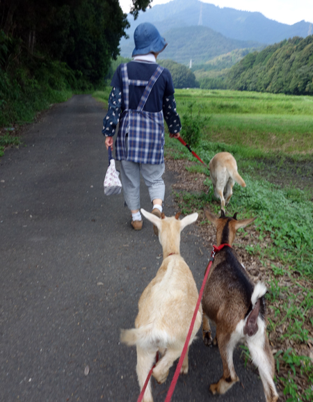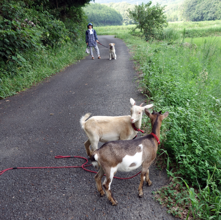 昨日夕方、メイとジュンを譲って頂いたご家族が、ヤギ訪問。可愛いと成長を喜んでいました。嫁がせ先の、飼育環境が悪かったり、子ヤギが可愛いと飼い始めたが大きくなるともてあますということもあるそうです。2人を見て安心していました。
