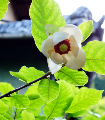 昨日朝 ブログにアップしようとオオヤマレンゲの写真を撮りました。そこで、庭のコンクリートブロックに素足で、右足小指を思いっきりぶっつけました。みるまに腫れてきて内出血しました。