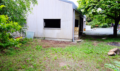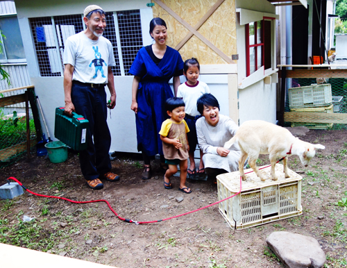 現在、子ヤギは乳離れし、親の愛を受けています。そして、ヤギ小屋制作中です。