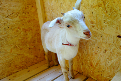 よく、ヤギといえば白いヤギの日本ザーネン種。現在日本の乳用ヤギの代表種で大型でよく見かけます。