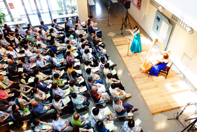 6月12日午後2時からのフロイデンホールでのロビーコンサートは、「ハープ・フルートの調べ」と題して、開催しました。