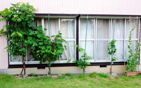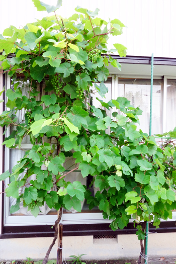 家のブドウの樹が、房をたわわにつけています。品種は、巨峰とネオ・マスカット、そして、ベリーA。なにも肥培管理しない樹たちです。