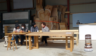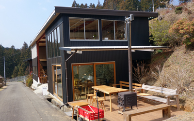 道路の上の家からは、日向ぼっこの婆ちゃん3人が ニコニコお茶を飲みながらお出迎え。良き所へ来たと感じました。青山さんは設楽で育ち、東京で暮らし、お嫁さんと子どもと共に帰ってきたんのです。