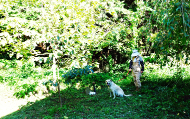 写真下部の草がはえているところが畑境です。
