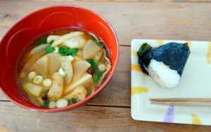その後は、かまど炊きご飯と、具だくさん味噌汁