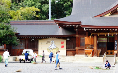神社の杜は、小枝や葉が境内に飛び散っていて、神職や巫女さんたちが、片づけをしていました。量も半端ではありません。