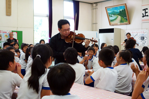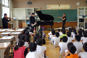 今週 アウトリーチに同行しました、2日間に渡って市内小中学校に赴き、45分程の演奏活動をしました。