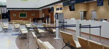 外来受付は2階で、ホテルのロビーのような広さです。ロビー壁面には、杤久保操画伯寄贈の、大作が掛かっていて、エントランスのポイントとなっています。