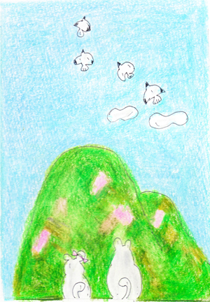 そして、親うさぎのイラスト 訪れた知人たちと、のんびりお話ししていました。