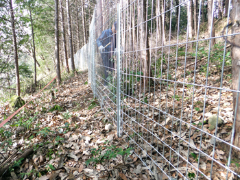 防護柵は、2m間隔に支柱を立て、ワイヤーメッシュ柵(縦180cm 幅200cm)を張り