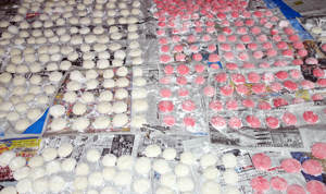 お供えや、配り持ちは手作りです、もちを作りながら