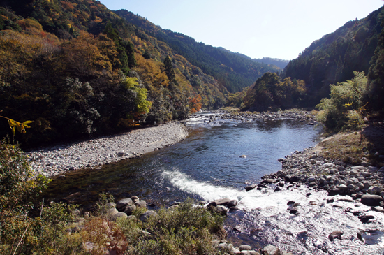 豊川沿いに、鳳来寺通があり、川と道路が沿い、紅葉と渓流を堪能しました。