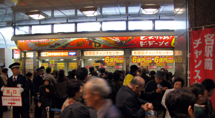 名古屋駅前チャンスセンターで、年末ジャンボ宝くじを発売中でした。