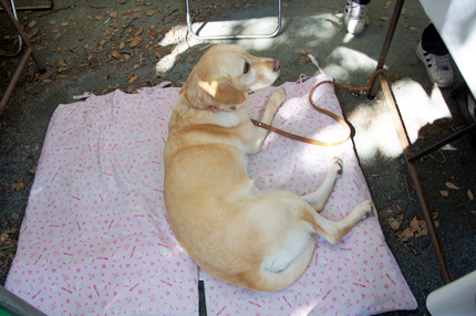 かたわらには、盲導犬見習い?のラブラドールがお迎えです。