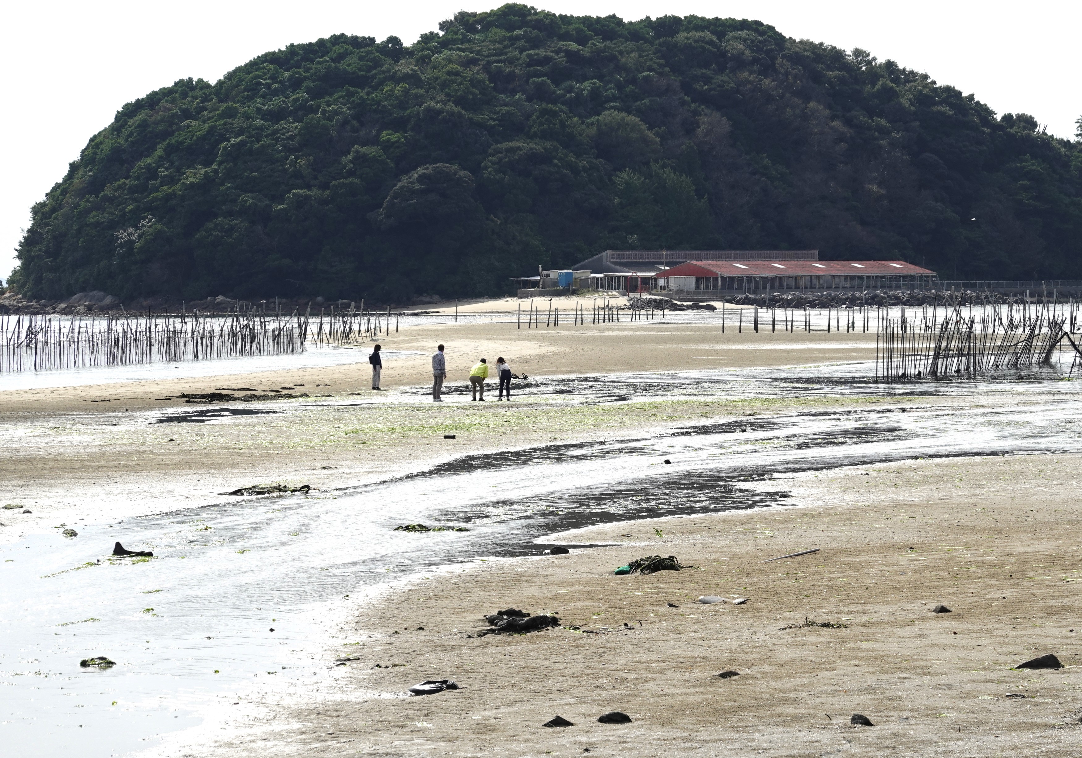 東幡豆の前島の海岸は、干潮時には島まで道ができ「トンボロ干潟」と言われている