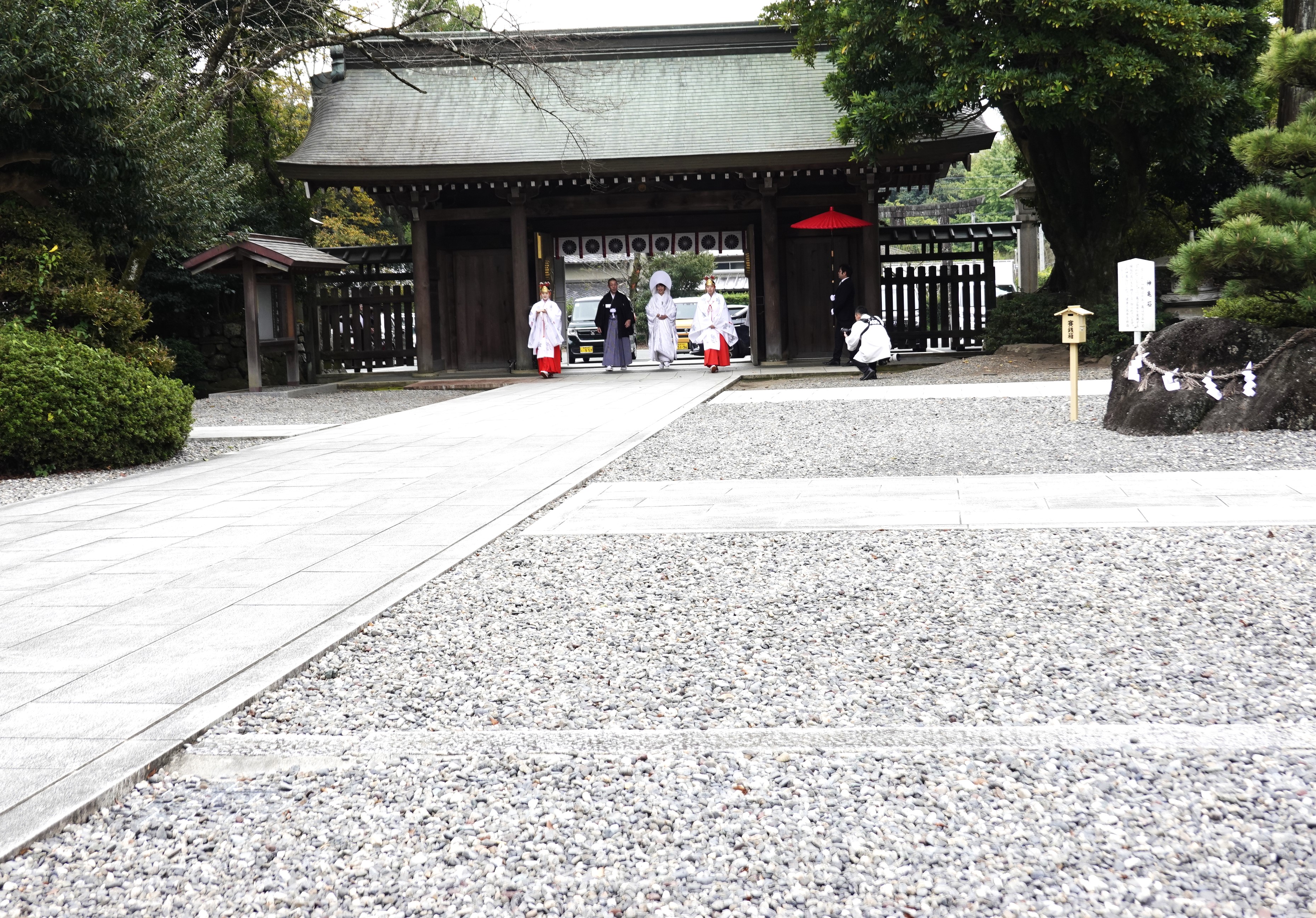 依然 知人が砥鹿神社の神前結婚式も模様を参拝所から、一眼レフカメラで撮りまくり