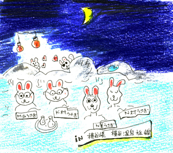 車内では、持ち寄りの菓子類、お酒などを分かち、ワイワイガヤガヤ