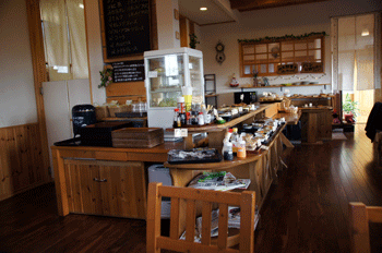 セルフのお店で、飲み物はオーダーを、パン、総菜等は自分でトレ―に