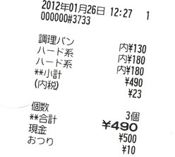 で使うのは承知していましたが、パンのレシートでも使うのですネ。