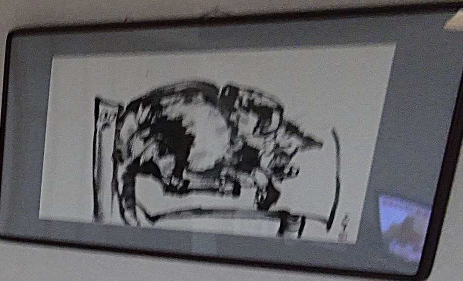 お腹を出して、超リラックス姿を絵と、写真にしました りりしい姿もよいが、信頼しきった寝姿も好きです