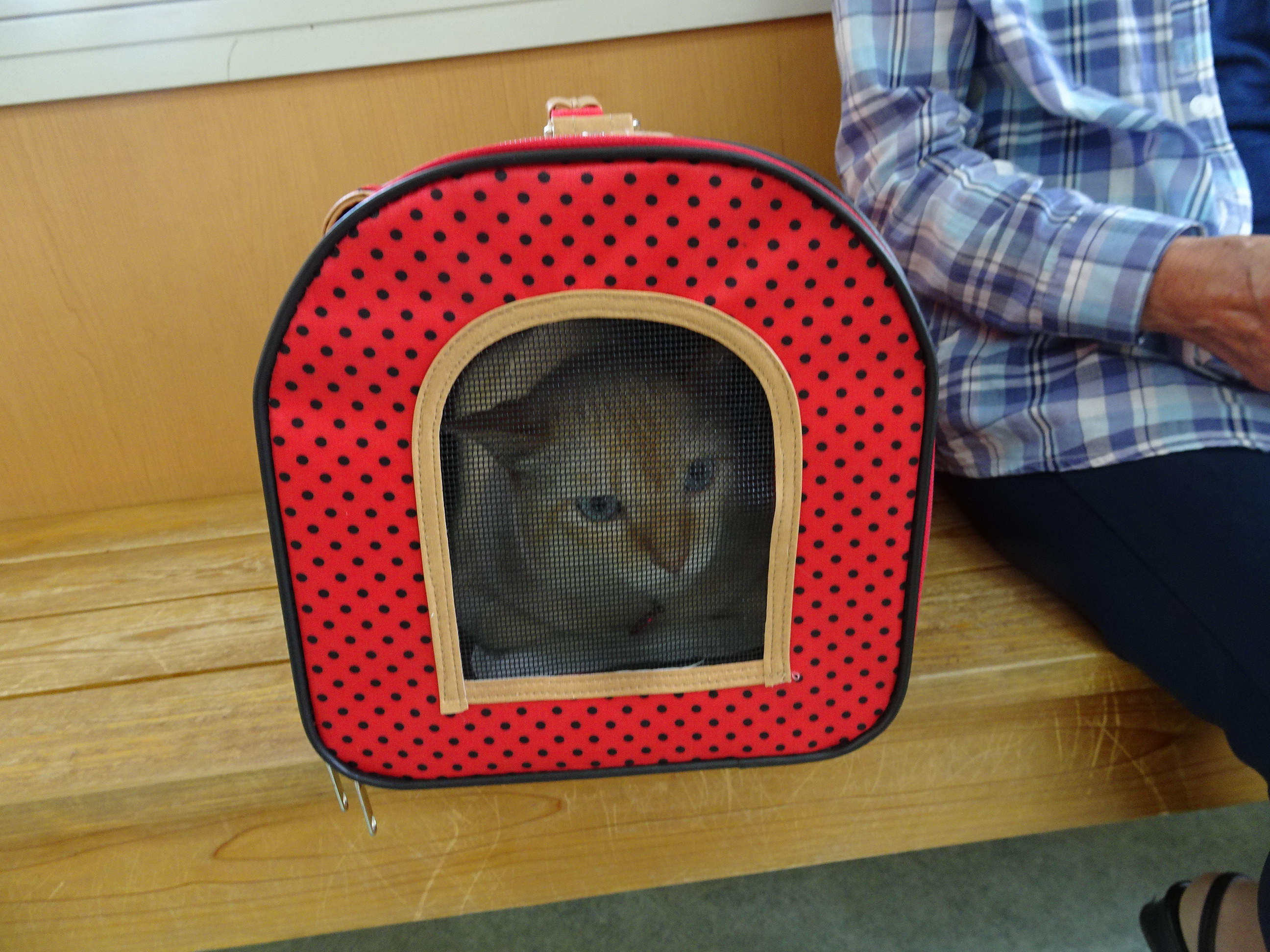 受診の時のお約束 カーゴに入れられると、病院へ行くと察し、車内でミャーミャー 鳴くが、院内に入ると諦めたのか、あまり鳴くと、ネコプライドにかかわると思うのか静か