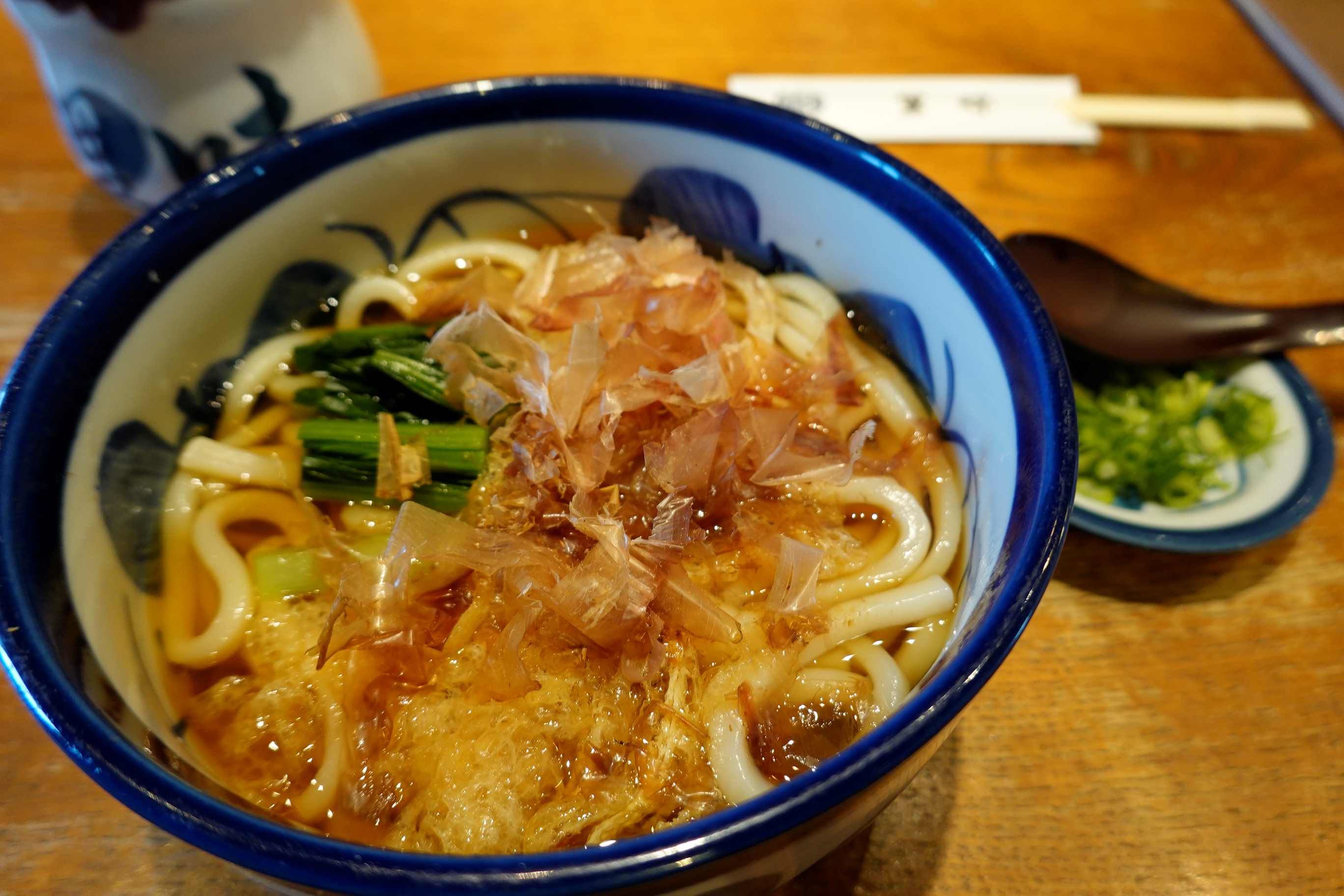この地域では、花かつおを散らしたうどんを かけうどんでもなく、素うどんでもなく にかけうどんと言います ソウルフードです