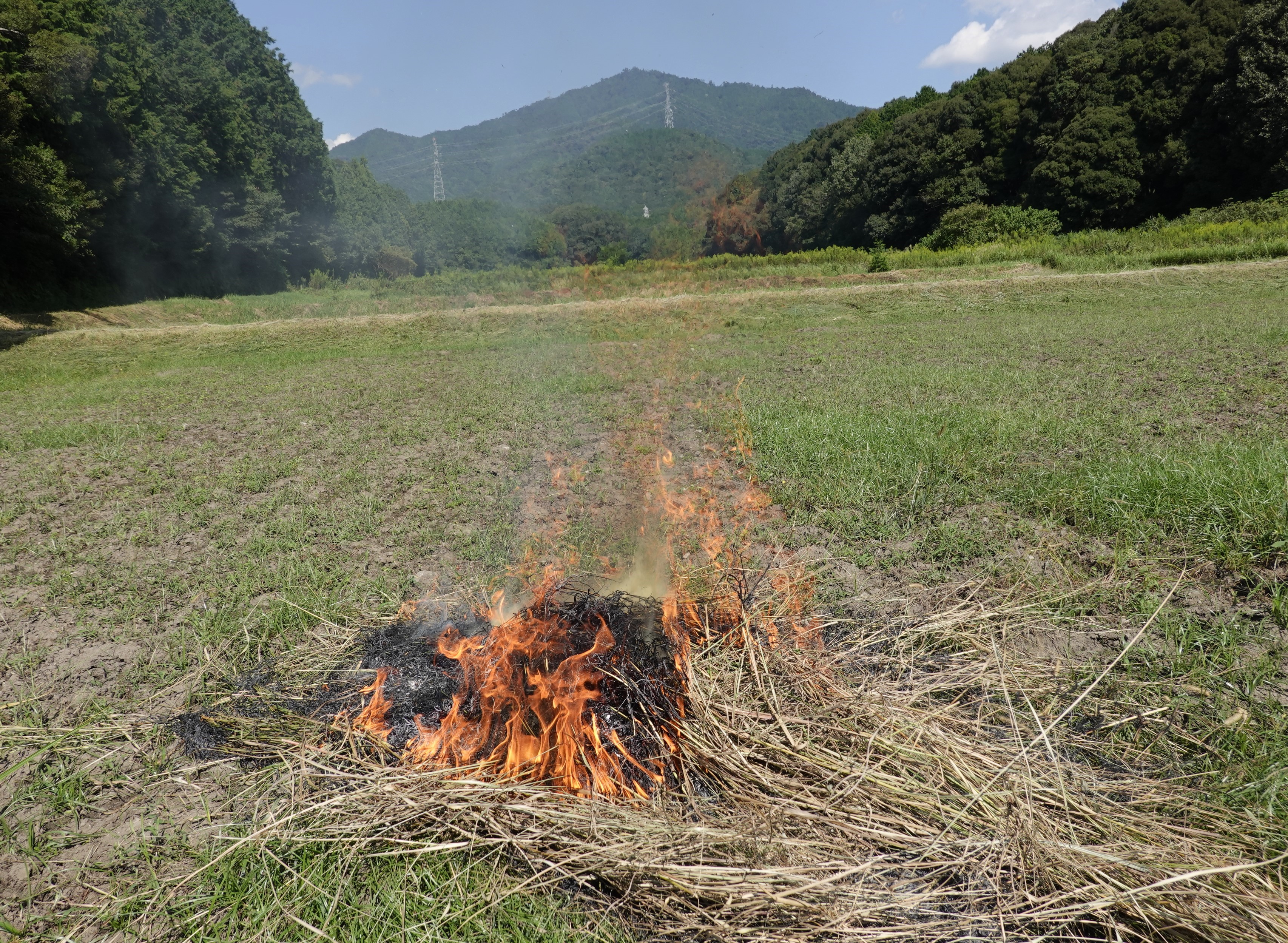 周囲に燃え広がらないよう注意し 水持参 秋になれば草の成長も止まるだろう