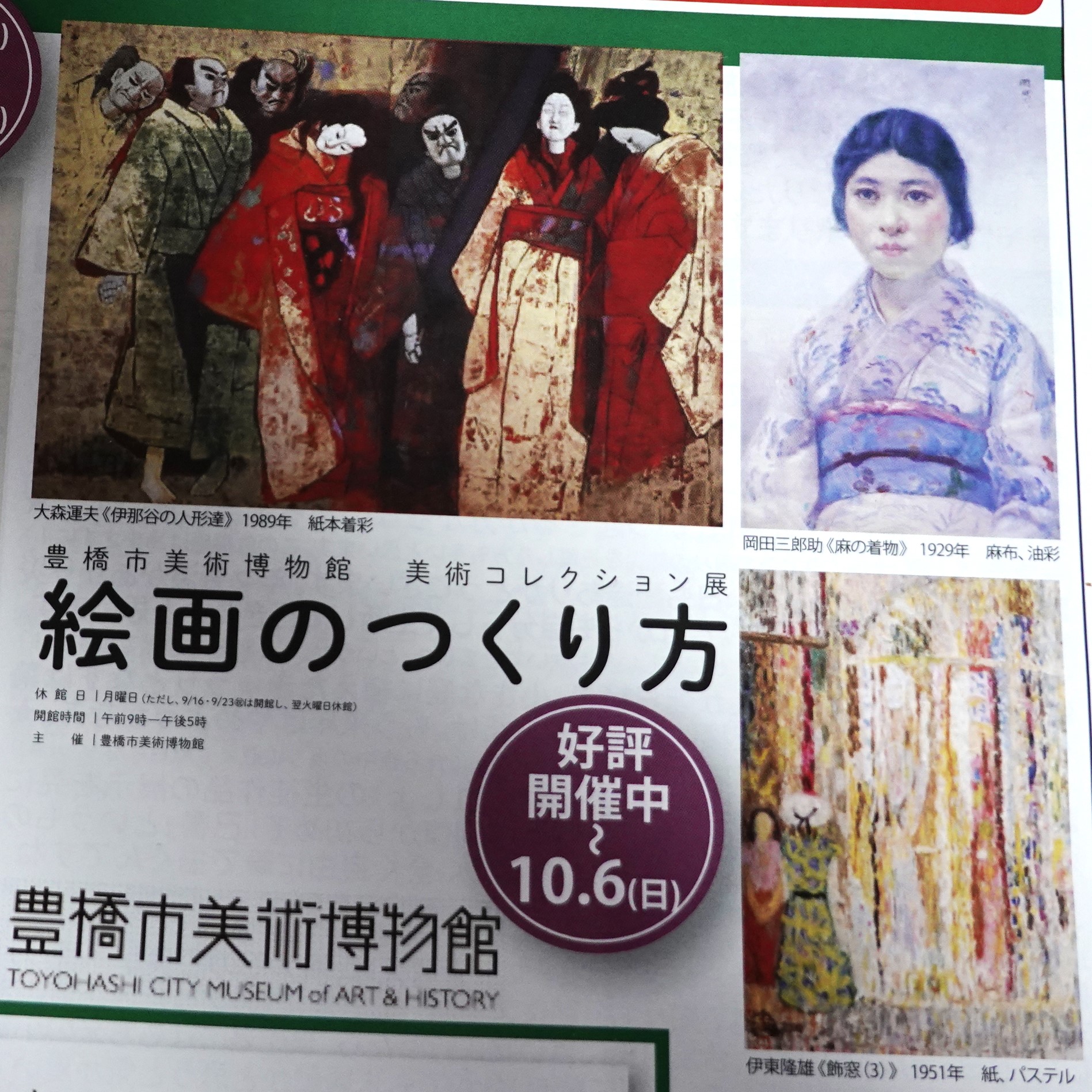 今回は、地味だが良い展覧会 大きな絵を描くのには、下絵を描きそれを展示 また、油絵 水彩 水墨 パステルの違いなどを丁寧に説明 楽しめました 10月6日まで 入場無料